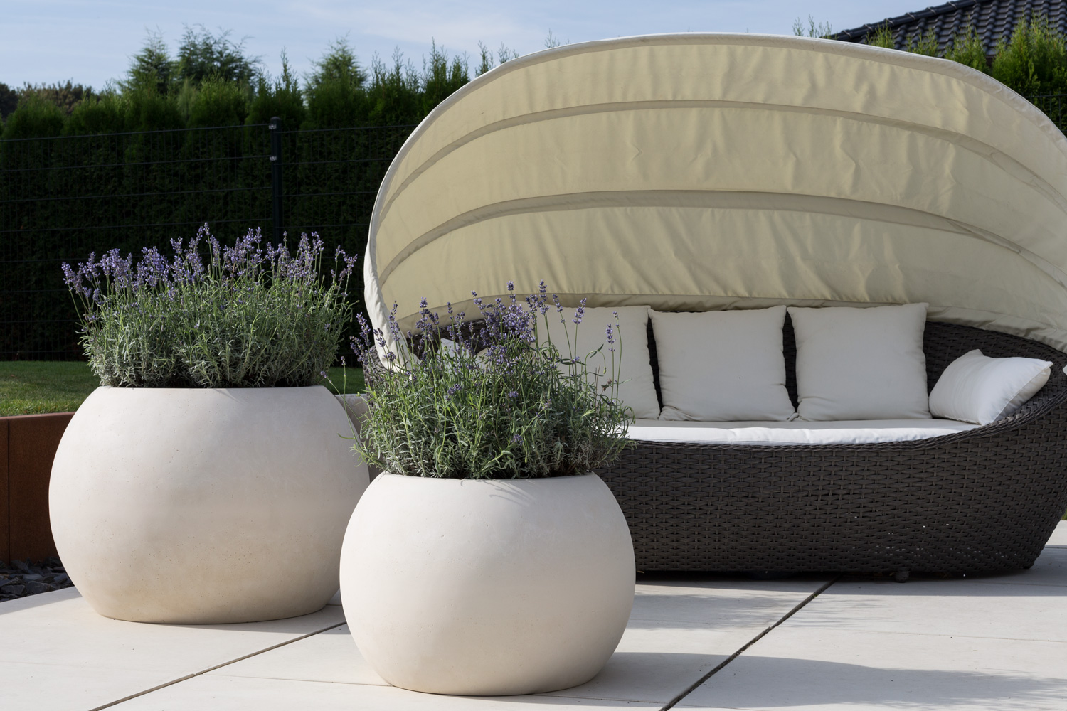 Okrągły, organiczny kształt GLOBE tworzy piękne akcenty w ogrodach i na tarasach. Wykonany z lekkiego, wytrzymałego materiału polystonowego, pojemnik na rośliny punktuje swoją naturalną, lekko porowatą powierzchnią. Proste, ale autentyczne kamienne spojrzenie, które przekonuje. Donica jest dostępna w trzech kolorach: kremowym, szarym i antracytowym.