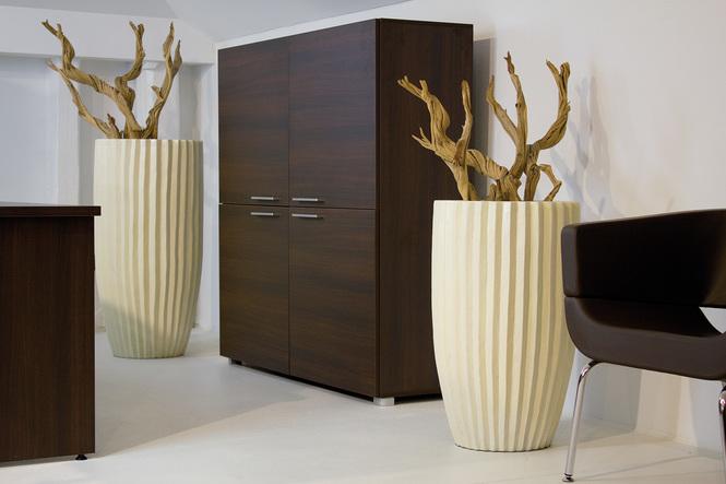 Prawdziwą klasyczną donicą z fleur ami jest SAHARA. Z podłużnymi paskami - w naturalnym kremie lub w antracycie i czerni - wygląda eterycznie i stanowi fascynujący kontrast dla każdej rośliny. Ręcznie wykonany z lekkiego polistyrenu, a więc bardzo lekki.
